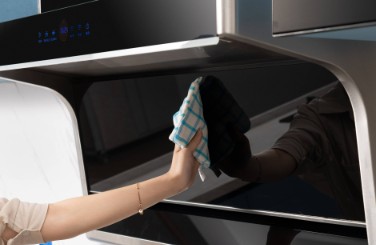外殼清洗:用濕抹布擦拭油煙機(jī)外殼,如有污漬,可用去油劑涂抹。